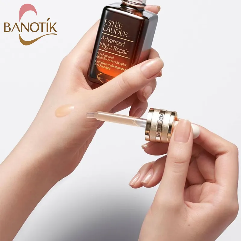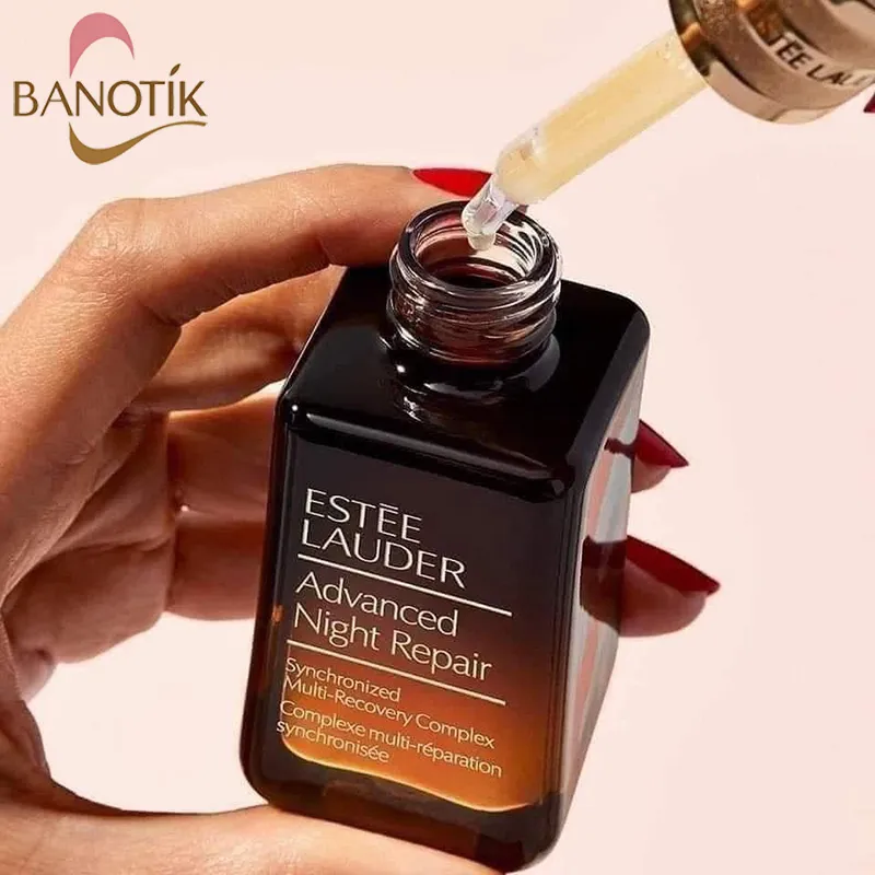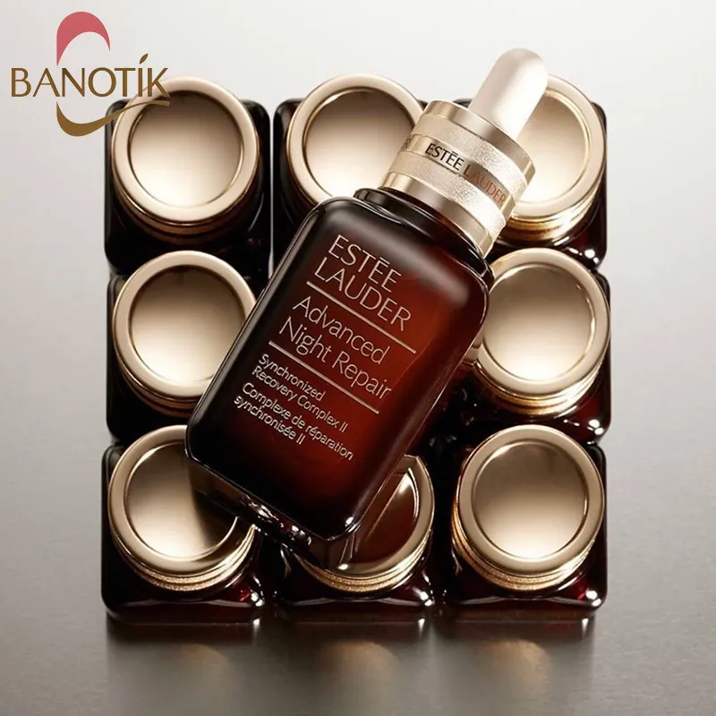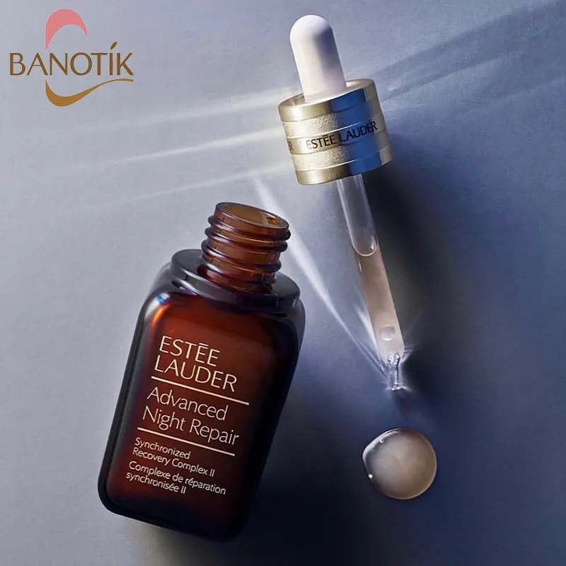 برای تشخیص نسخه اصل از فیک سرم ادونس نایت ریپیر استی لادر اصل به بطری قهوهای براق، درب حلقه طلایی همراستا، قطرهچکان دقیق و بافت طلایی ملایم دقت کنید.