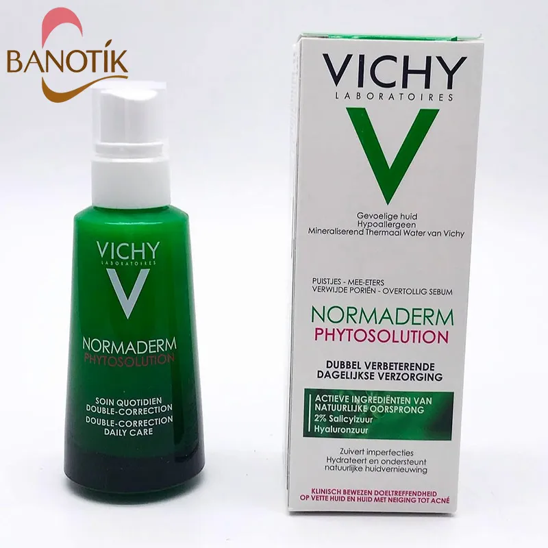 مرطوب کننده نورمادرم ویشی را با حرکات ضربه ای سبک روی T-zone (پیشانی، بینی، چانه) و نواحی پرجوش پخش کنید. این محصول حاوی سالیسیلیک اسید است، بنابراین به تنظیم ترشح سبوم و کاهش التهاب فعال در همین نواحی کمک میکند. - استفاده محدود به یک بار در روز در شروع مصرف